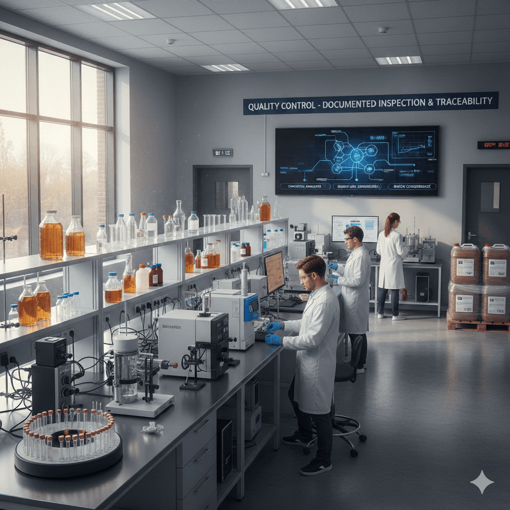 We apply strict raw material qualification protocols, laboratory testing procedures, and batch-level quality verification to ensure product purity, safety, traceability and consistency. Each production lot is monitored for chemical, microbiological, and physical parameters in accordance with regulatory and certification requirements.